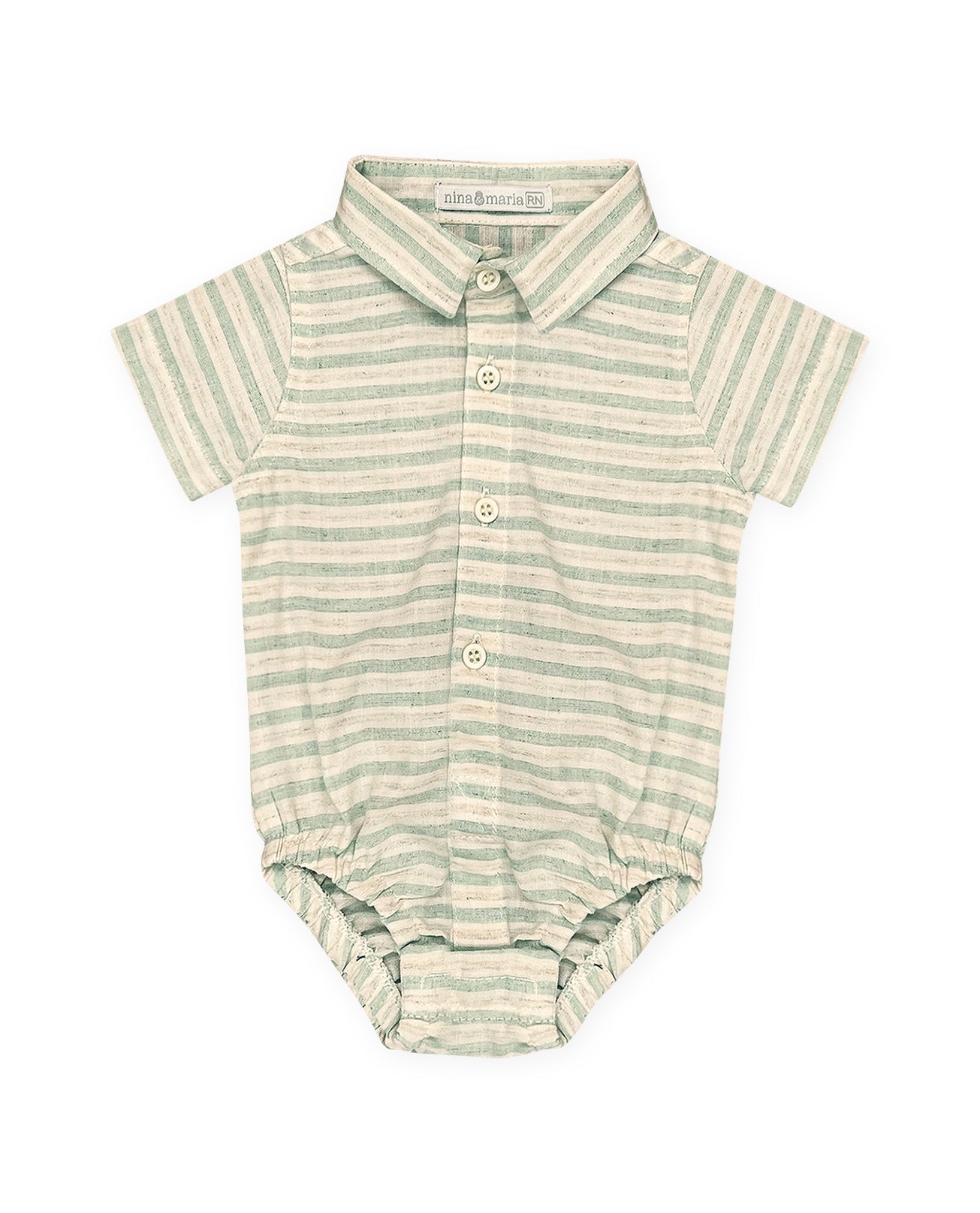 Body camisa social manga curta confeccionado em tecido flamê 100% algodão de alto padrão, proporcionando um toque gentil à pele delicada do bebê. Perfeito para compor look sofisticados e elegantes.