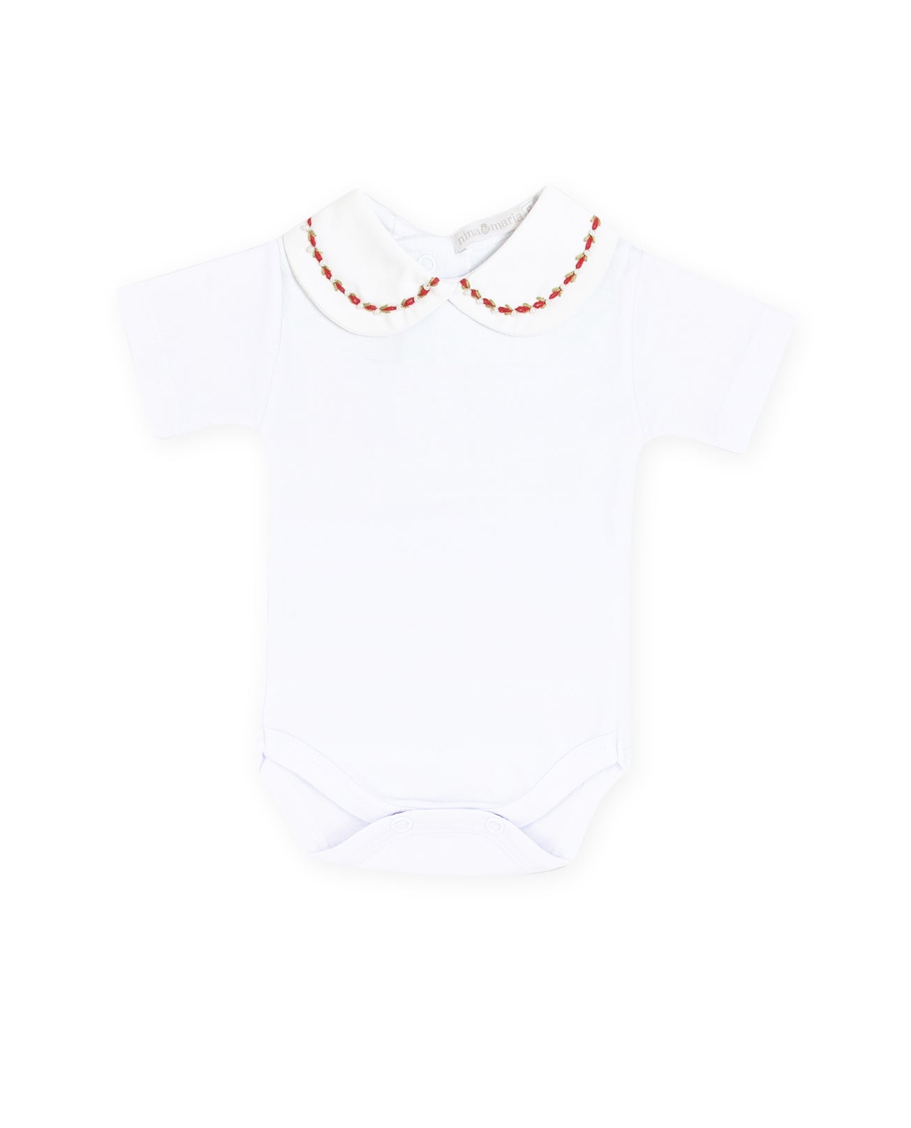 Body manga curta feminino em malha suedine 100% algodão com toque super macio e confortável. Gola redonda com bordado feito à mão de mini florzinhas e pérolas.