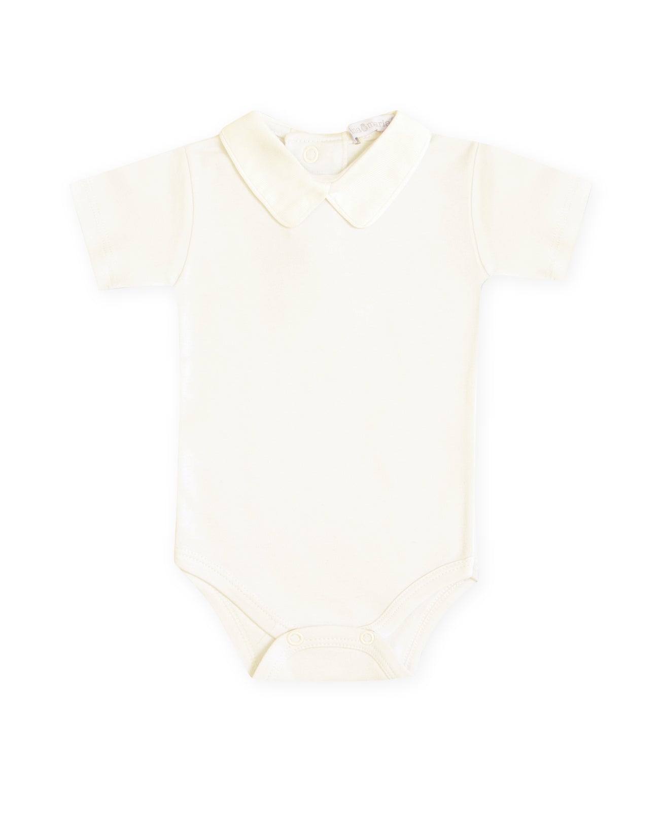 Body manga curta masculino com golinha lisa cru. Confeccionado em tecido suedine 100% algodão de alta gramatura e toque extra macio e confortável à delicada pele do bebê.