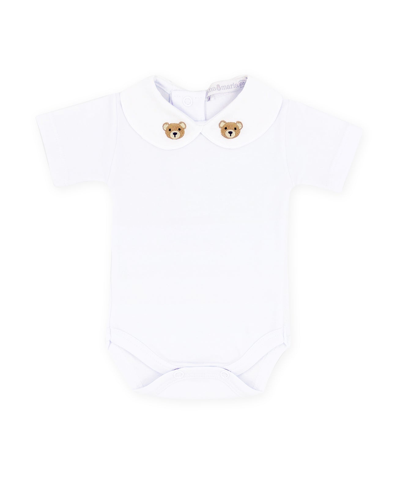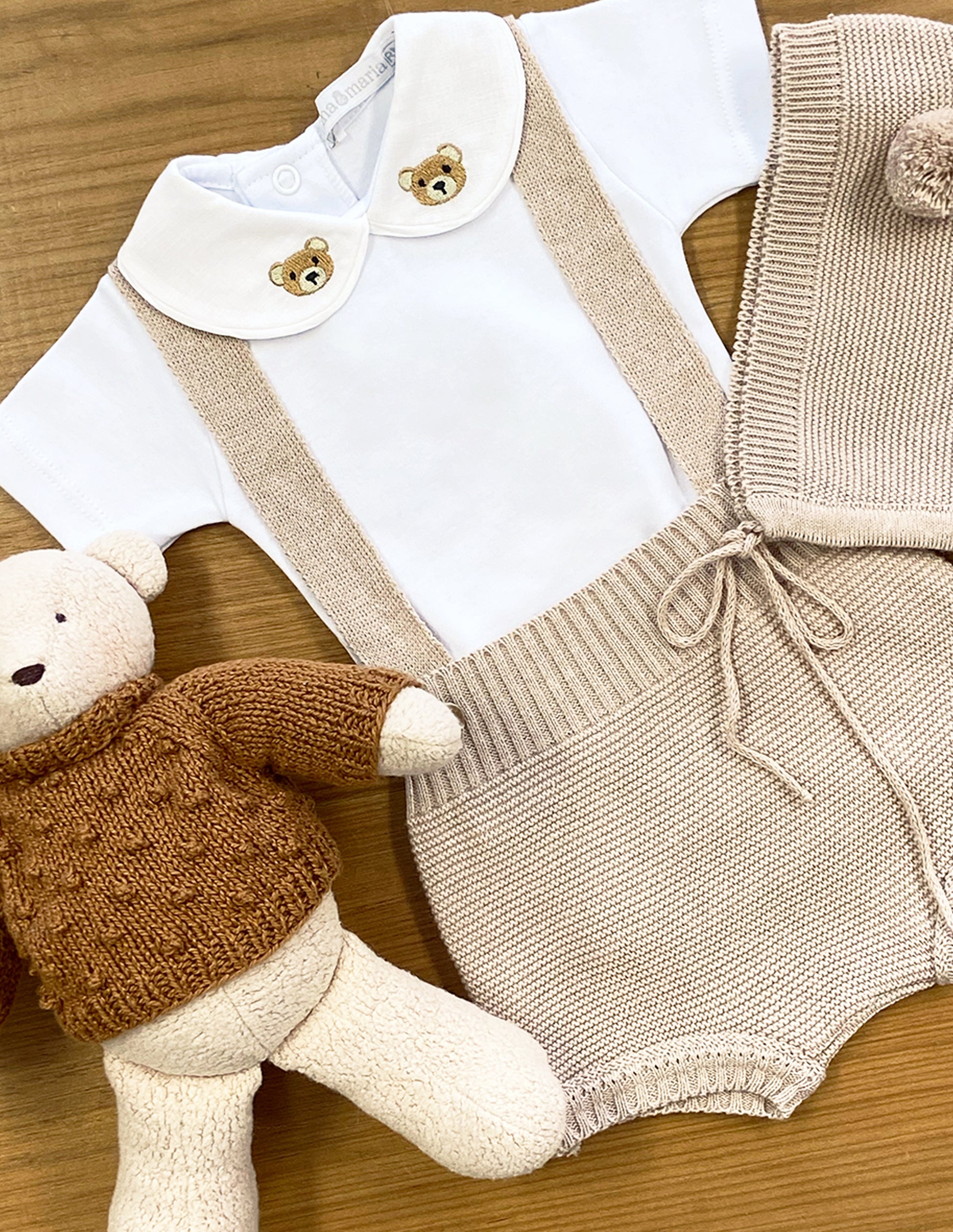 Body manga curta masculino com golinhas bordadas com ursinho. Confeccionado em tecido suedine 100% algodão de alta gramatura e toque extra macio e confortável à delicada pele do bebê.