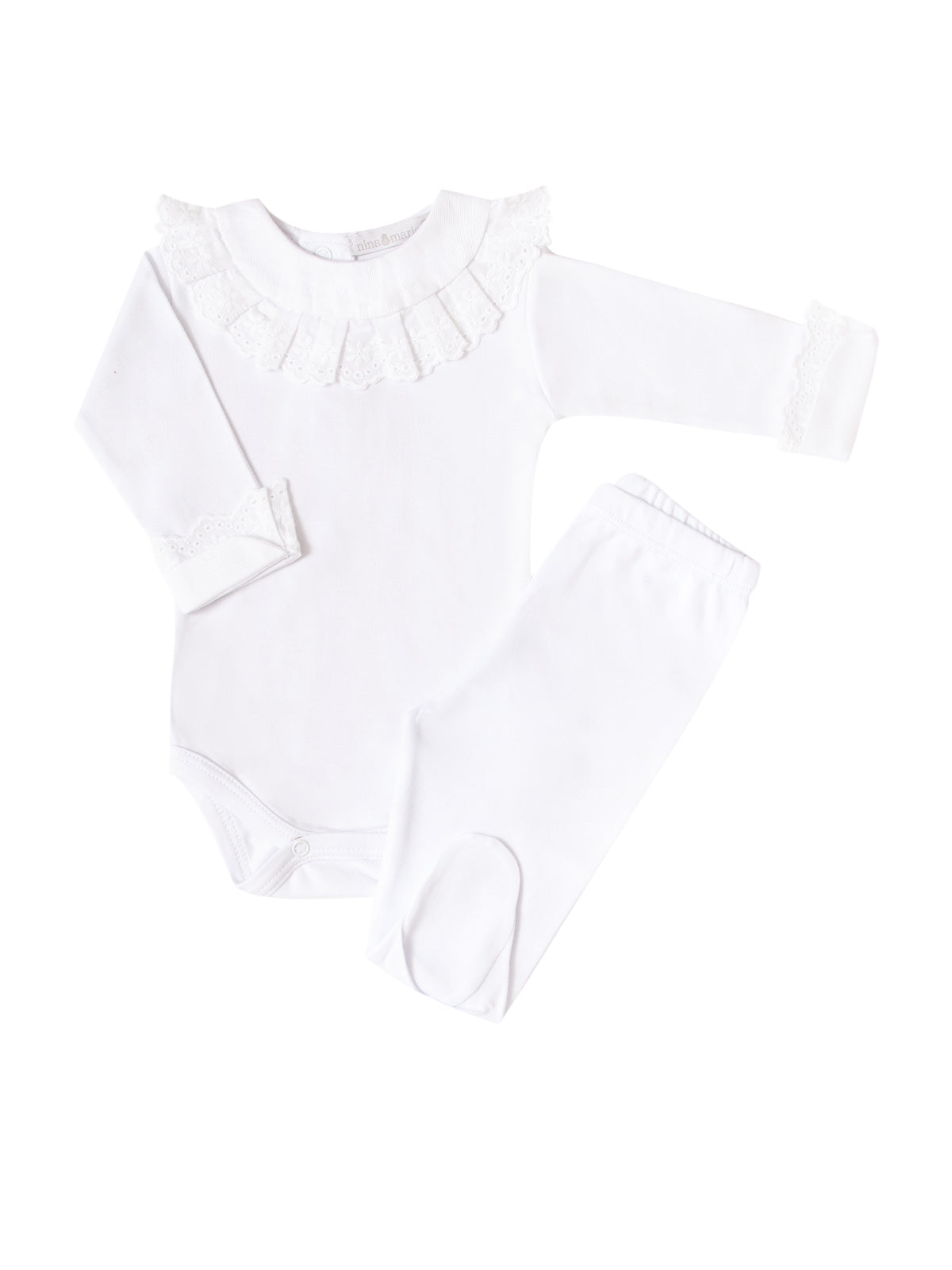 Body manga Longa feminino com golinha e detalhes nas mangas em lesie trazendo um ar vintage e sofisticado para o enxoval de sua bebê. Vem com o culote. Confeccionado em tecido suedine 100% algodão de alta gramatura e toque extra macio e confortável à delicada pele do bebê.