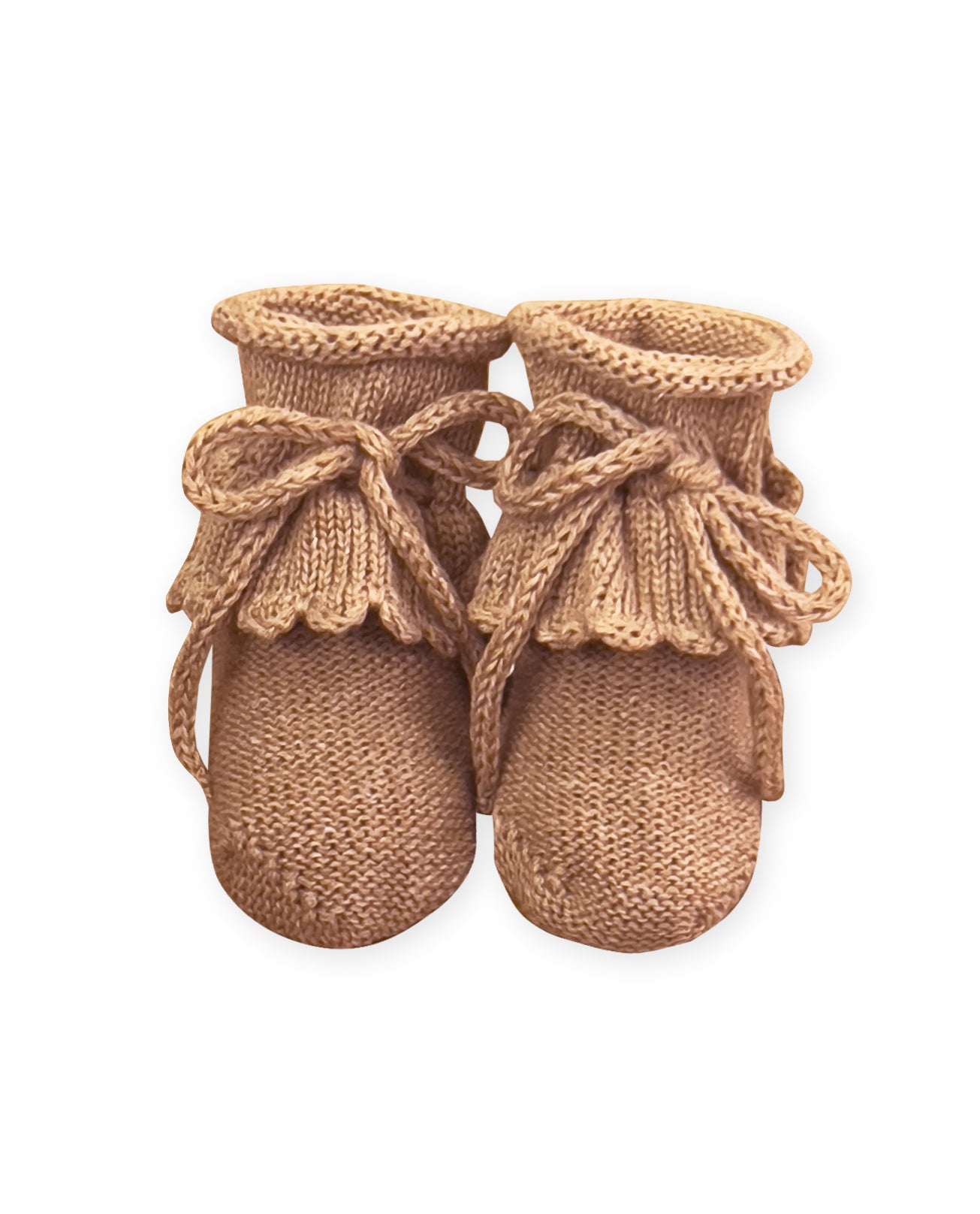 Sapatinho estilo botinha de tricot feminino artesanal.