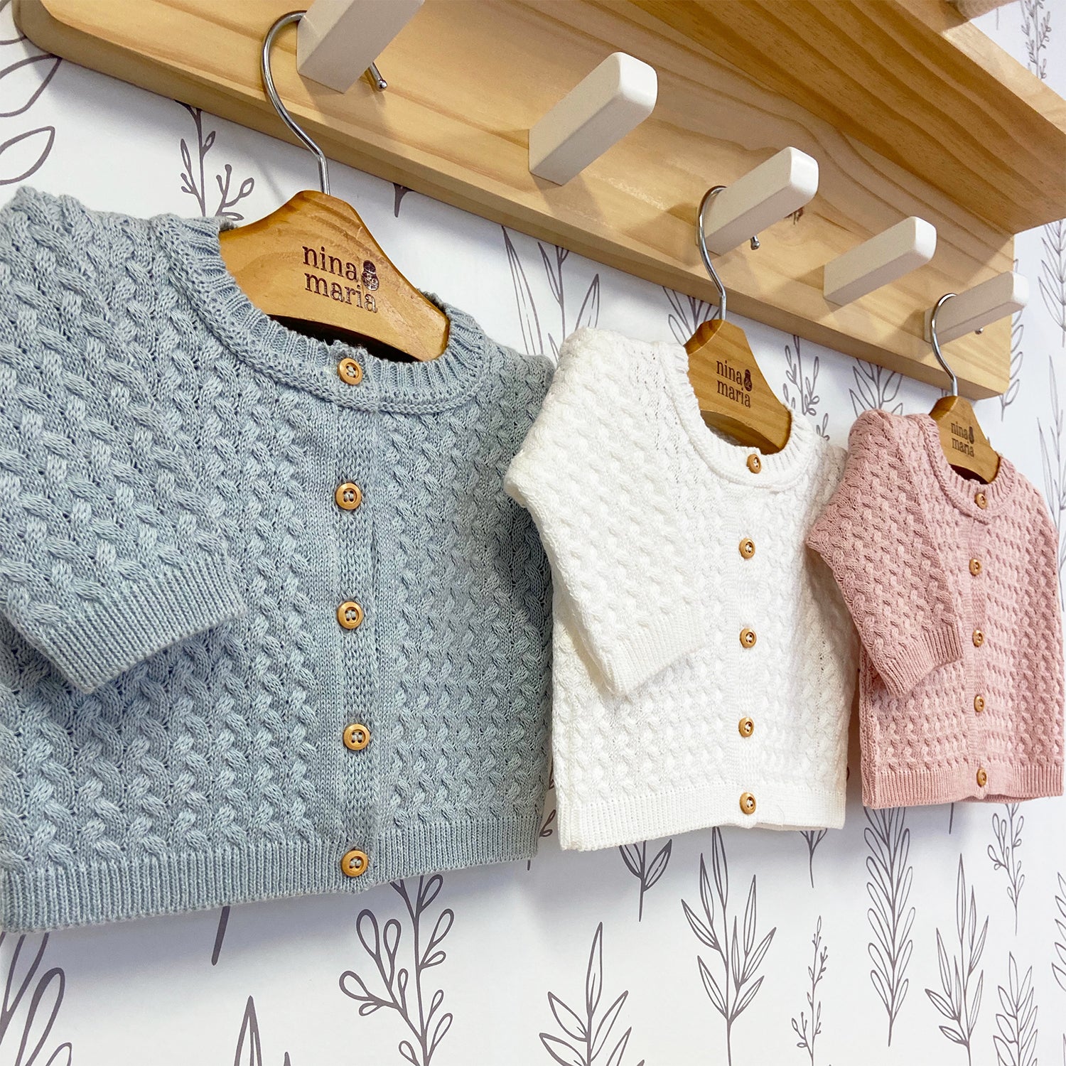 Casaquinho de tricot trabalhado com tranças. Possui abotoamento na entrepernas para facilitar a troca de fraldas e vem com alça de botão regulável.