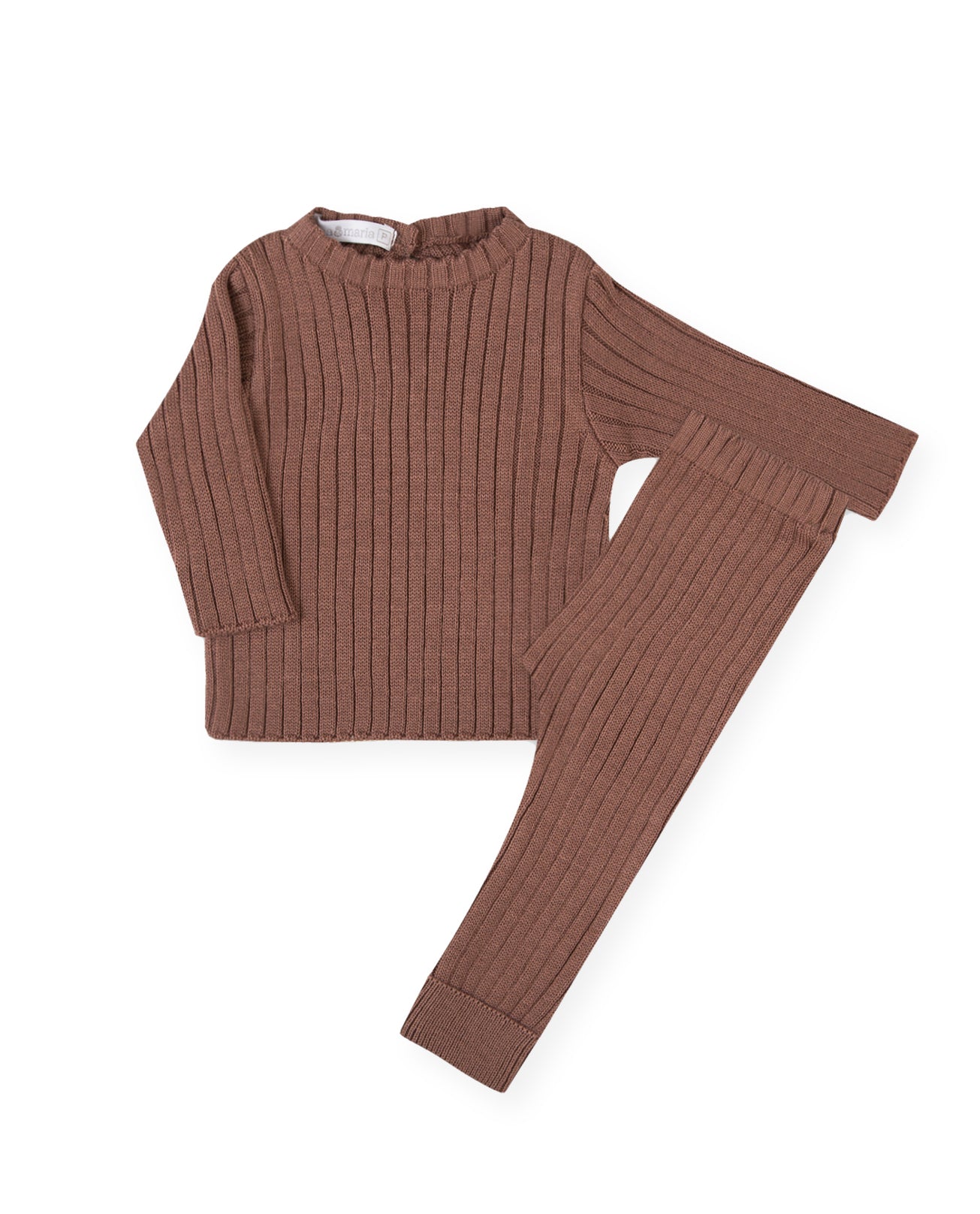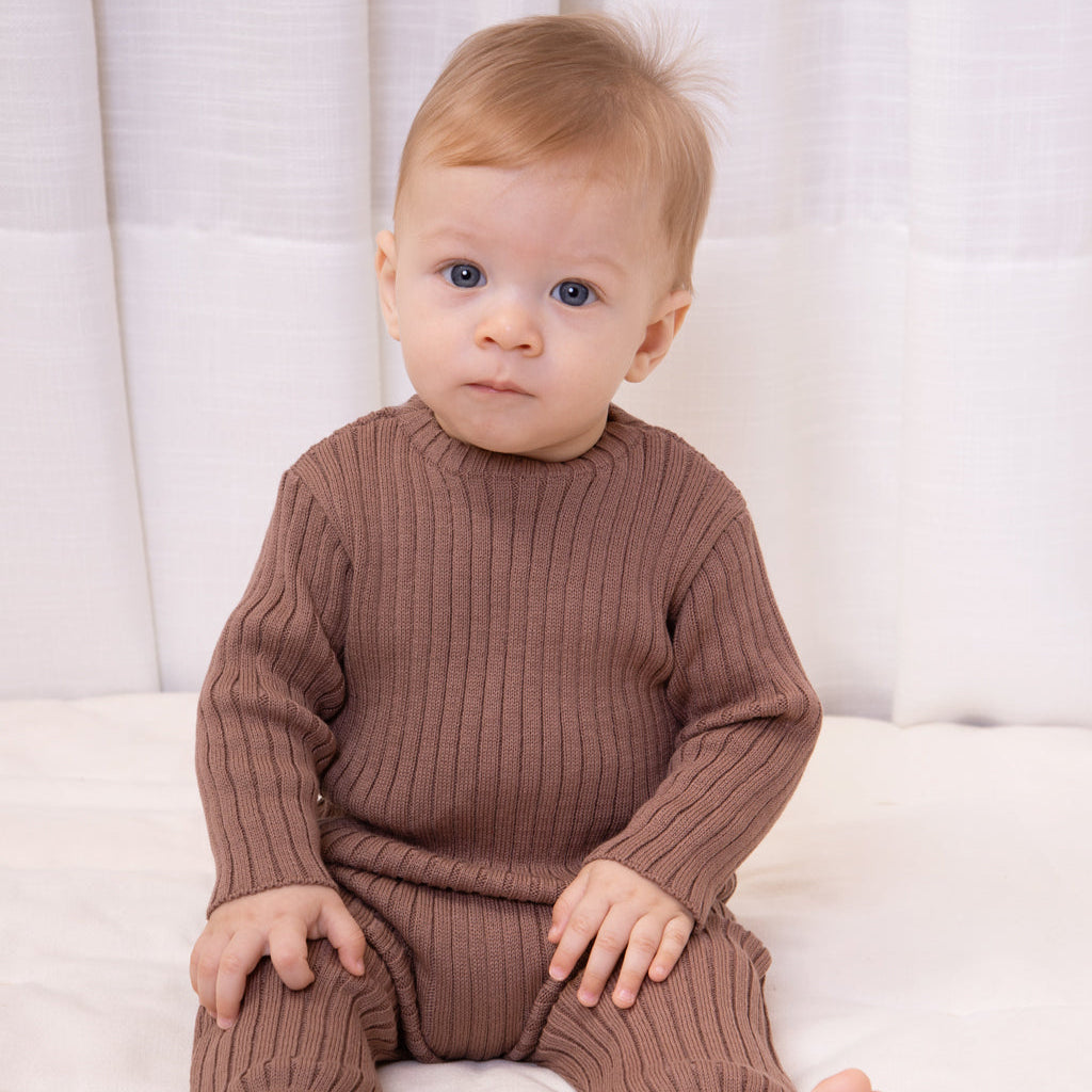 Conjunto minimalista com duas peças em tricot canelado. Acabamentos impecáveis com ajuste perfeito ao corpinho do bebê garantindo conforto e estilo aos pequenos. A blusa possui abertura em forma de gota com botão de fácil fechamentos das costas para facilitar a troca do bebê.