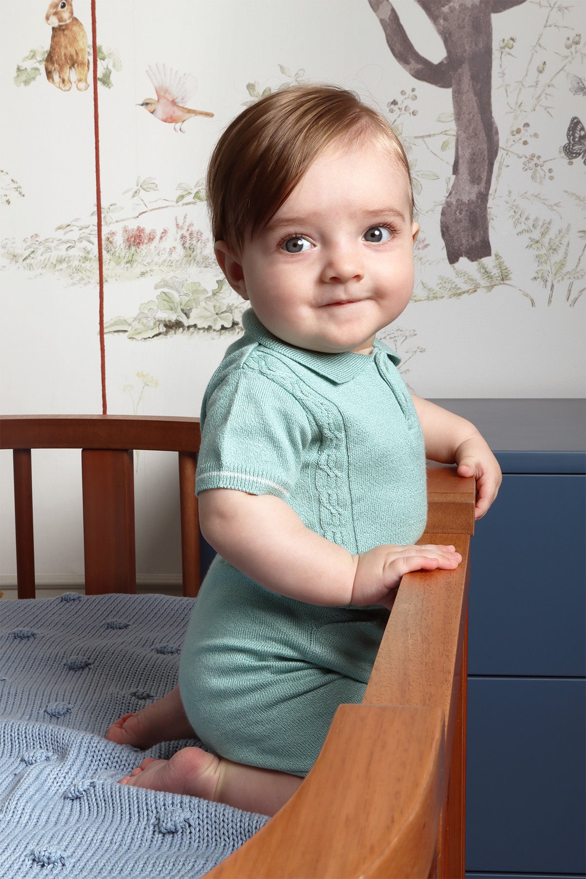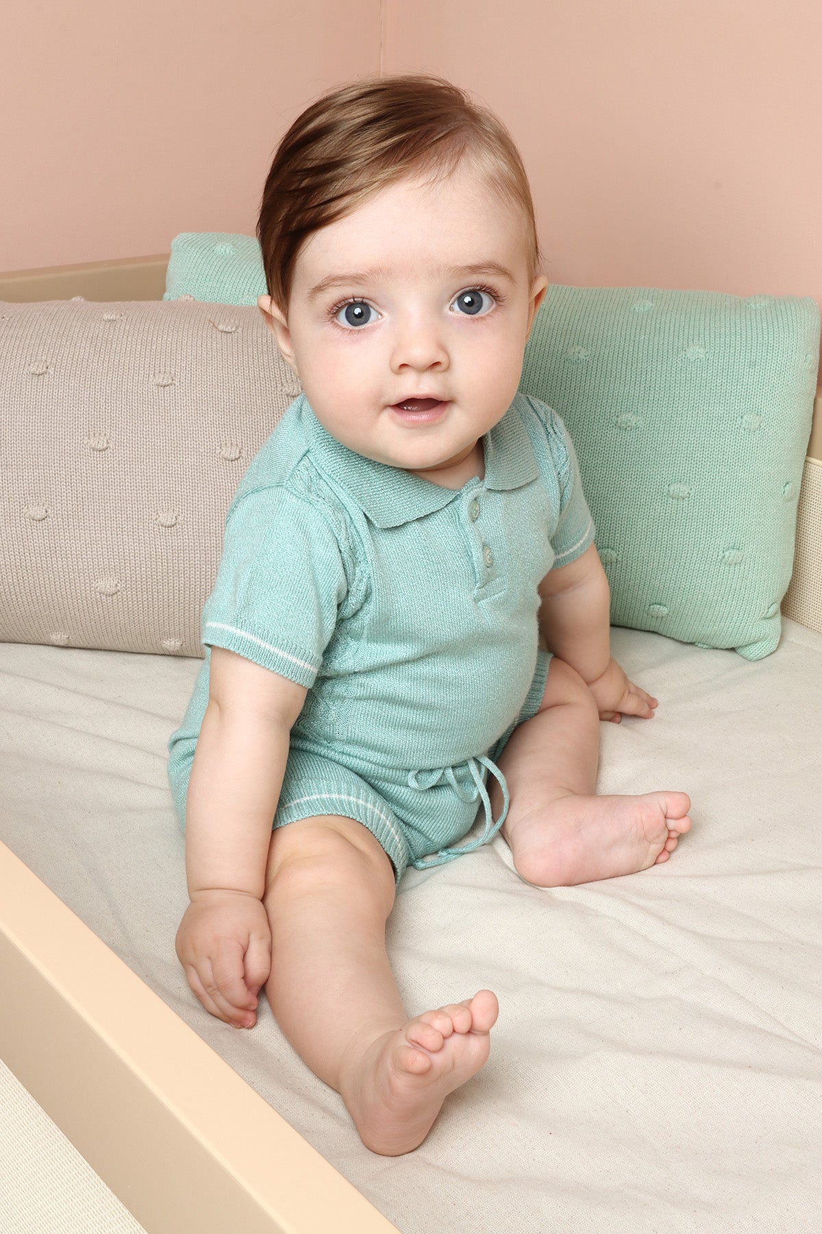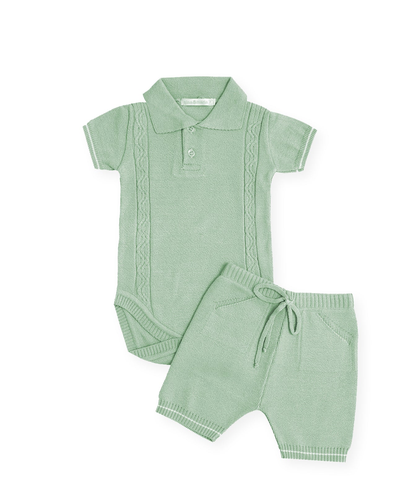 Conjuntinho de tricot fresh, tecido de toque macio e mais fresquinho. Body e shortinho com ajuste na cintura e bolsinhos.