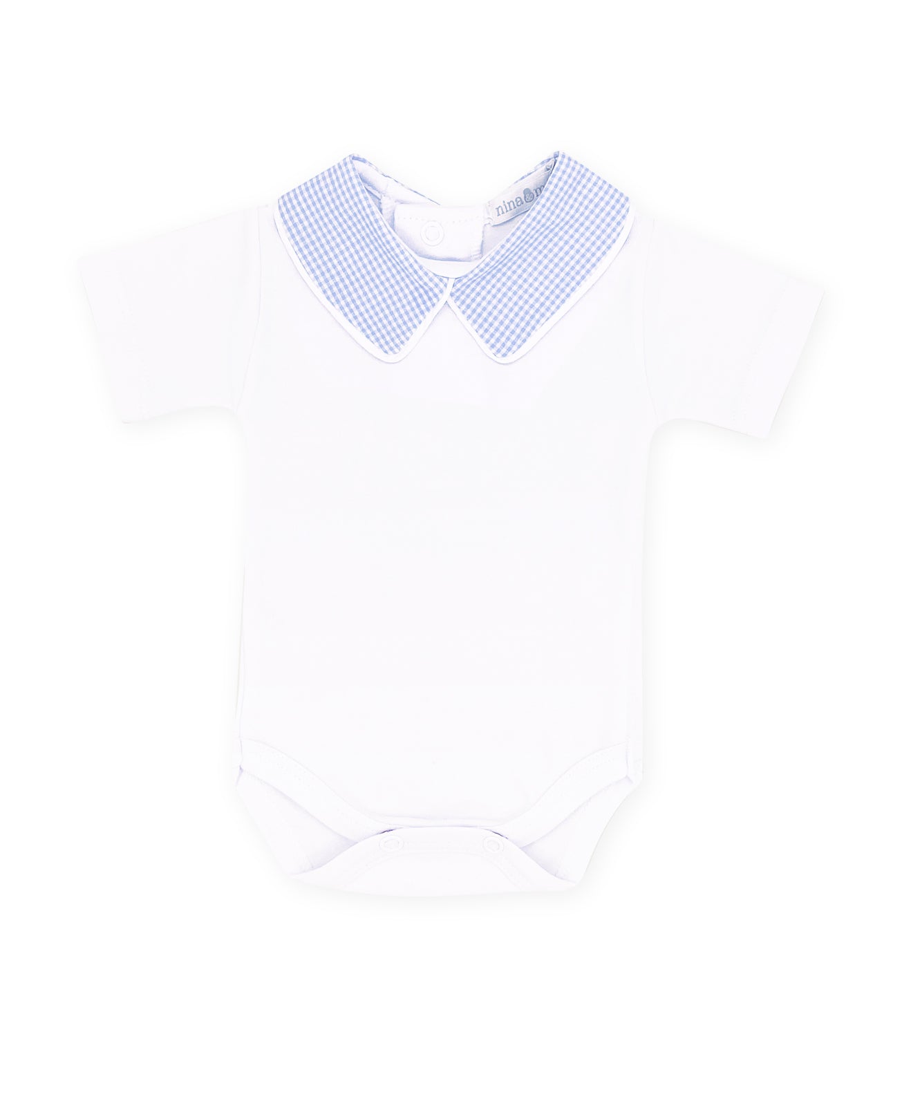 Body manga curta masculino com golinha xadrez azul-bebê. O xadrez combina com diversas composições e traz um ar super elegante para o enxoval do bebê. Confeccionado em tecido suedine 100% algodão de alta gramatura e toque extra macio e confortável à delicada pele do bebê.