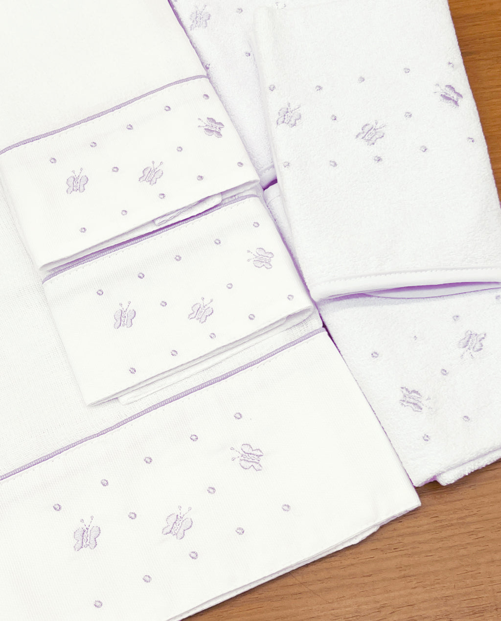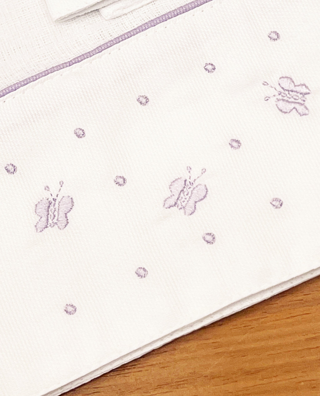 Kit completo de fraldinhas de boca para bebês com delicado bordado de borboletinhas.