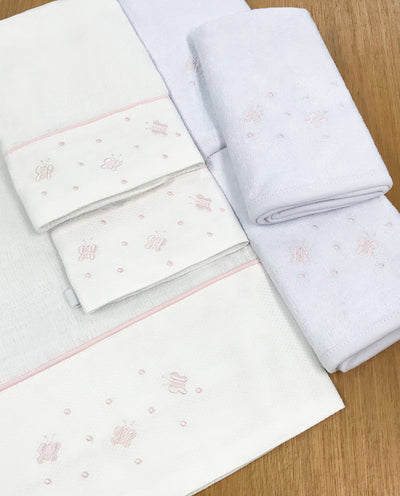 Macacão feminino com bordado à mão de borboleta com flores e mini pérolas. Possui abotoamento nas entrepernas e nas costas para facilitar a troca do bebê.
