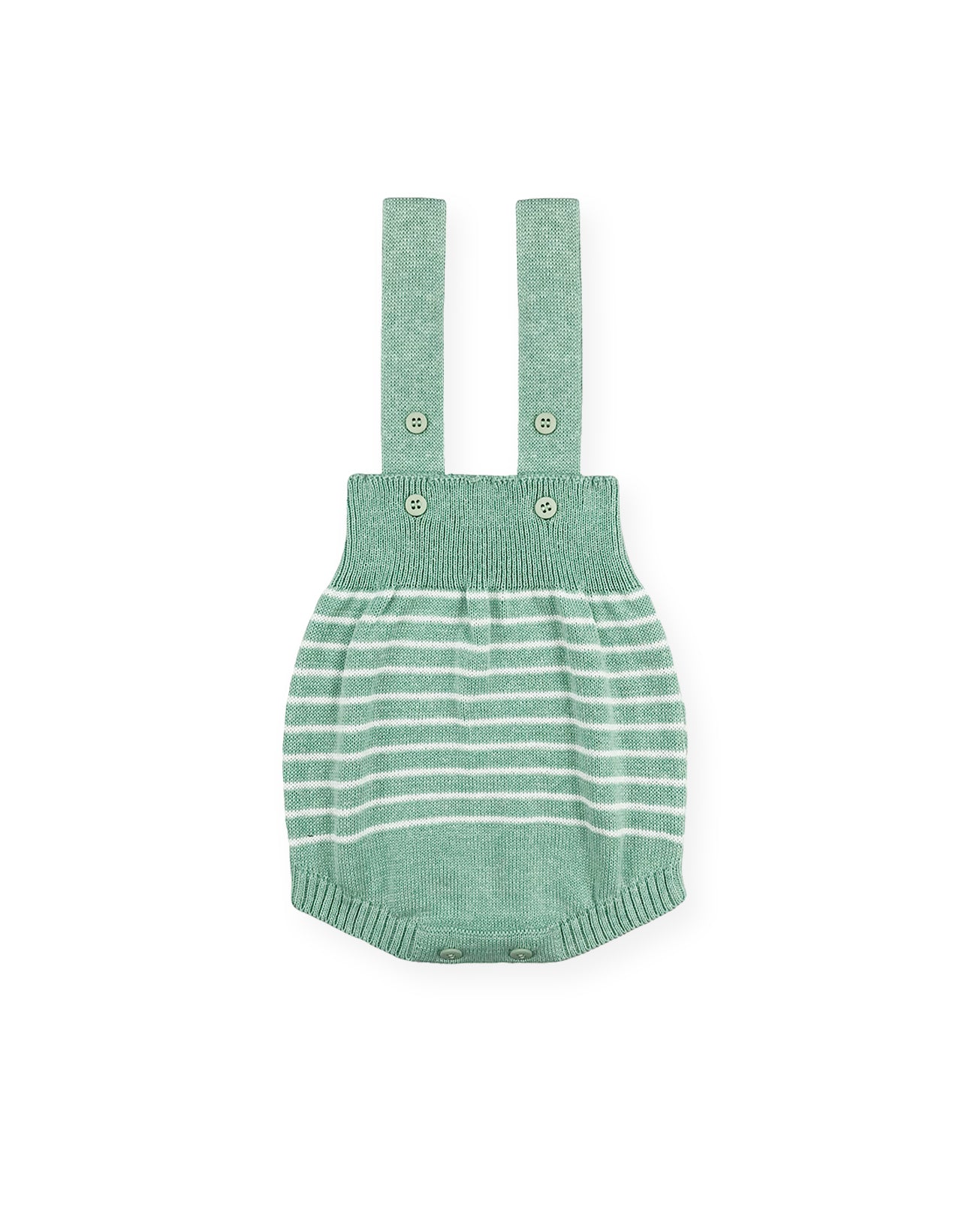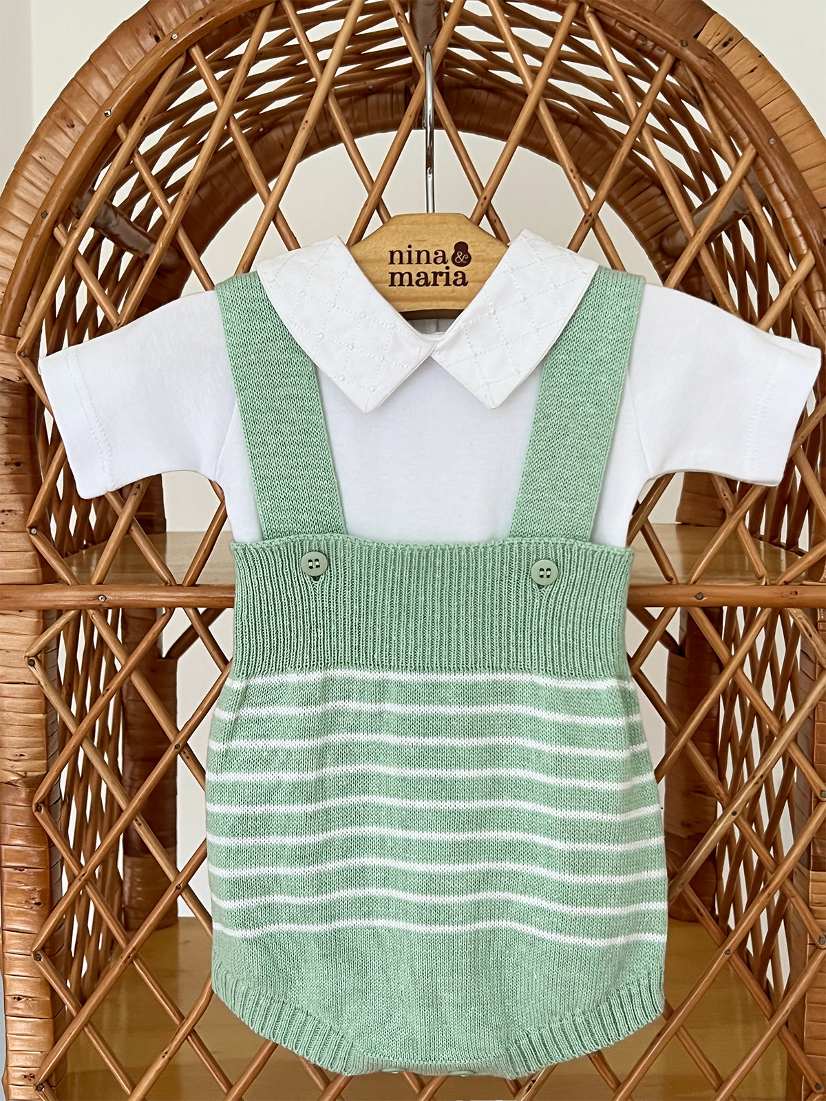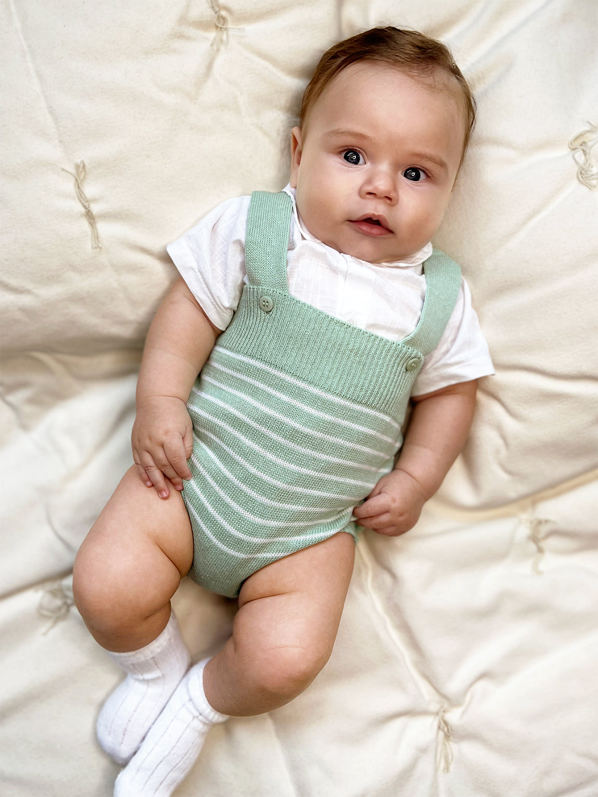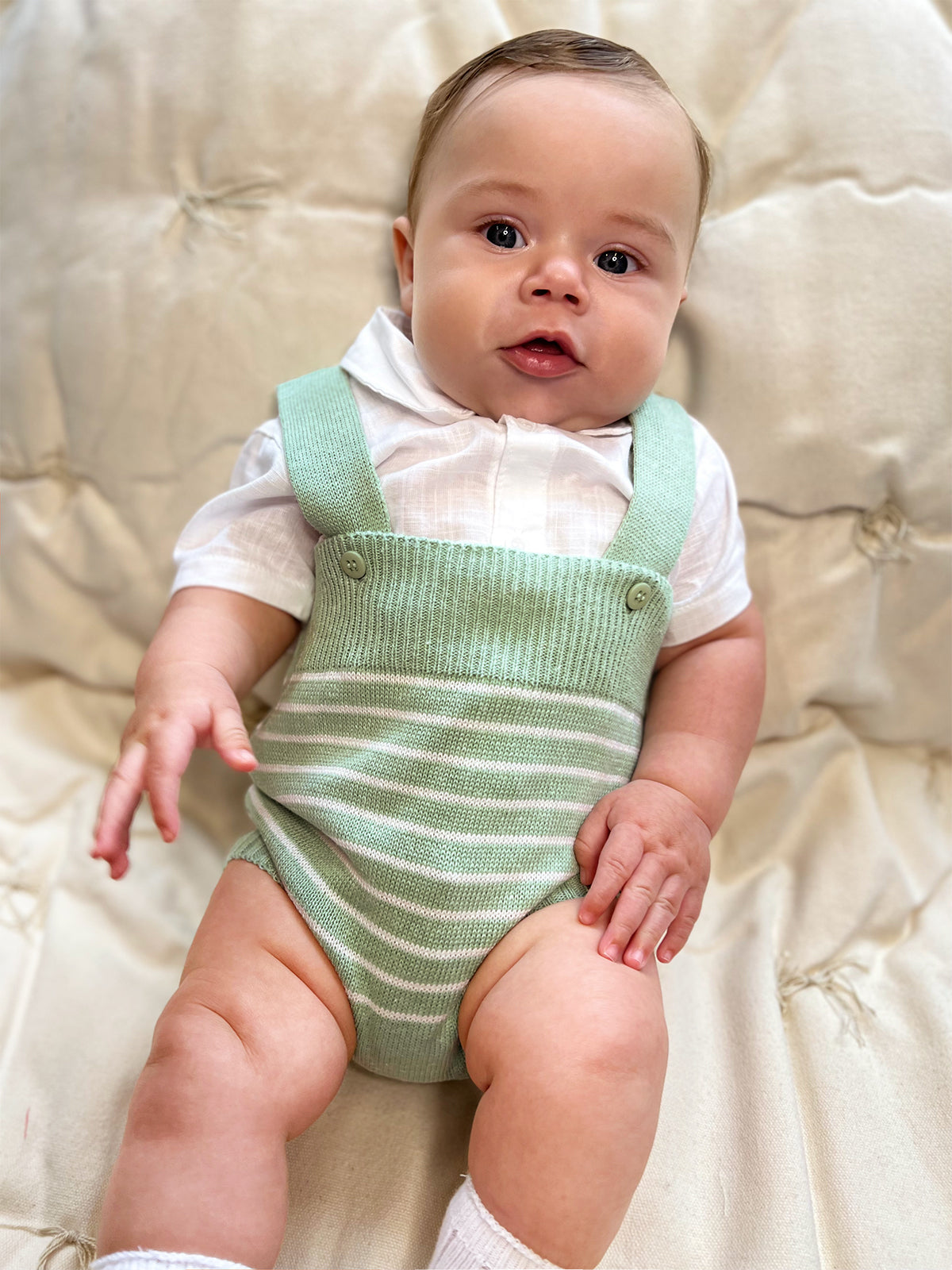 Shortinho cintura alta com suspensórios em tricot para bebê.