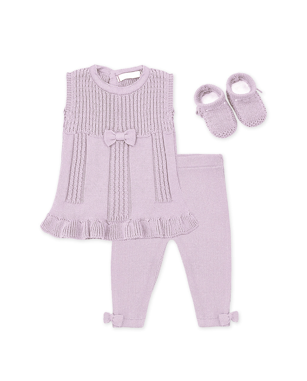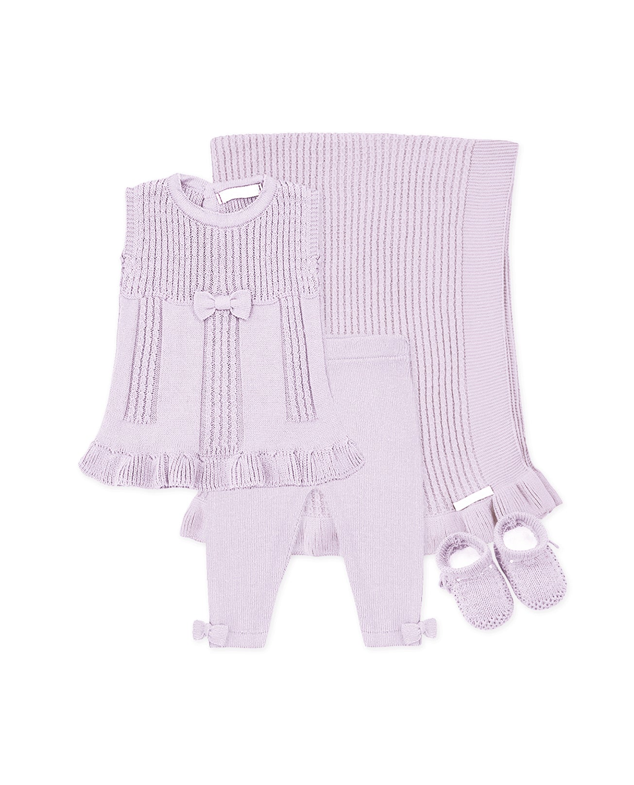 Saída de maternidade 4 peças. Vestidinho, legging sem pé, sapatinhos e manta de tricot com o mesmo trabalho do vestido.