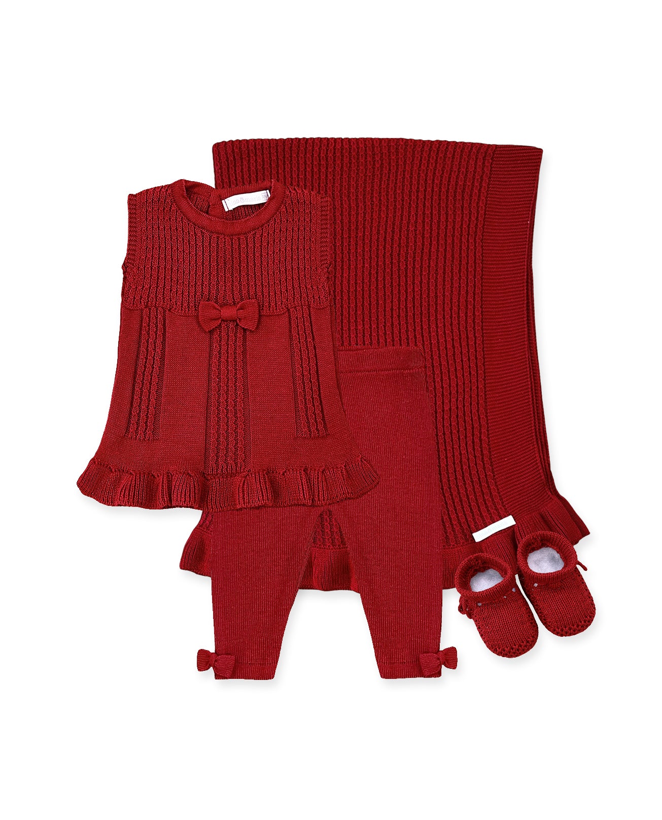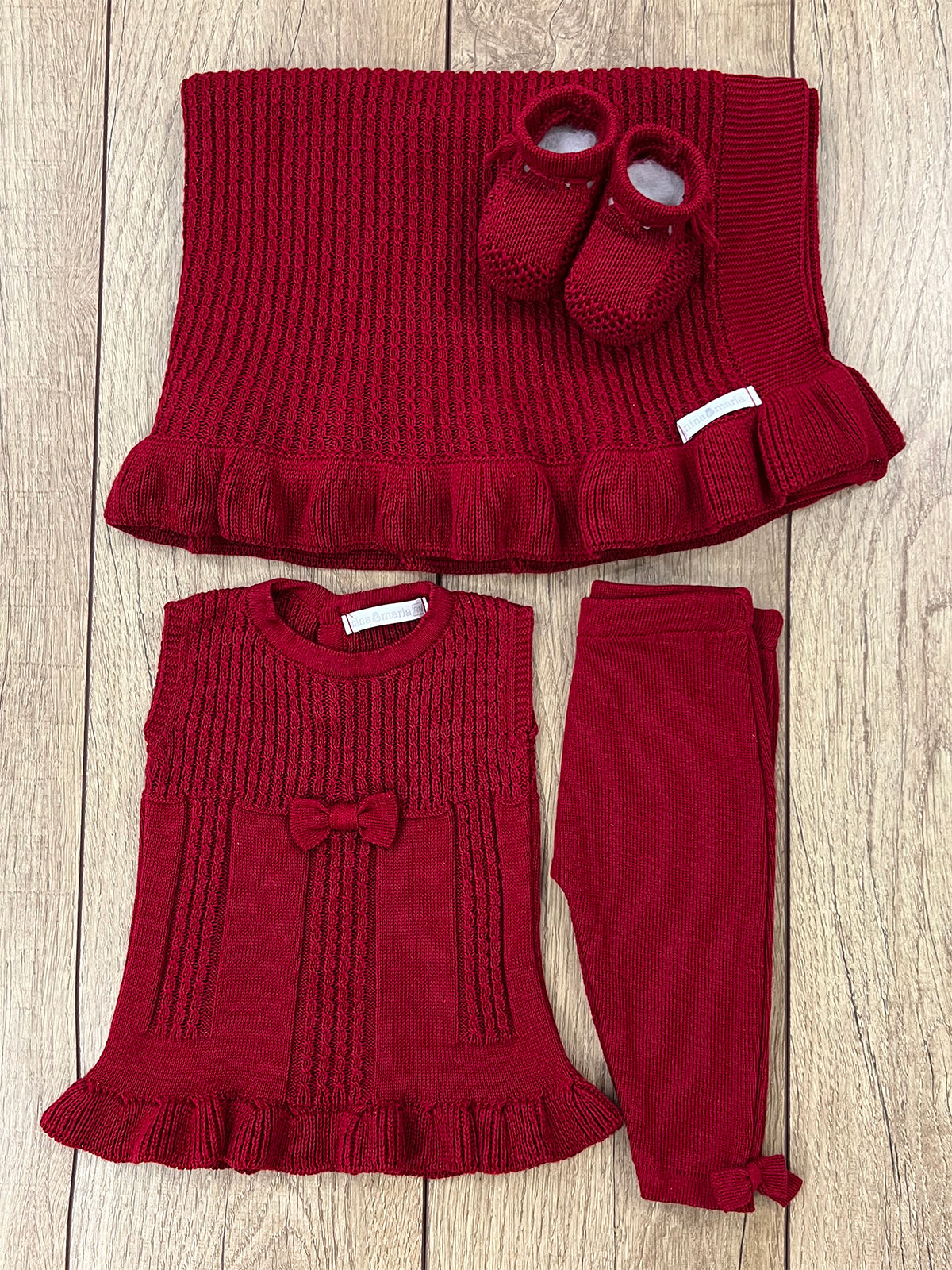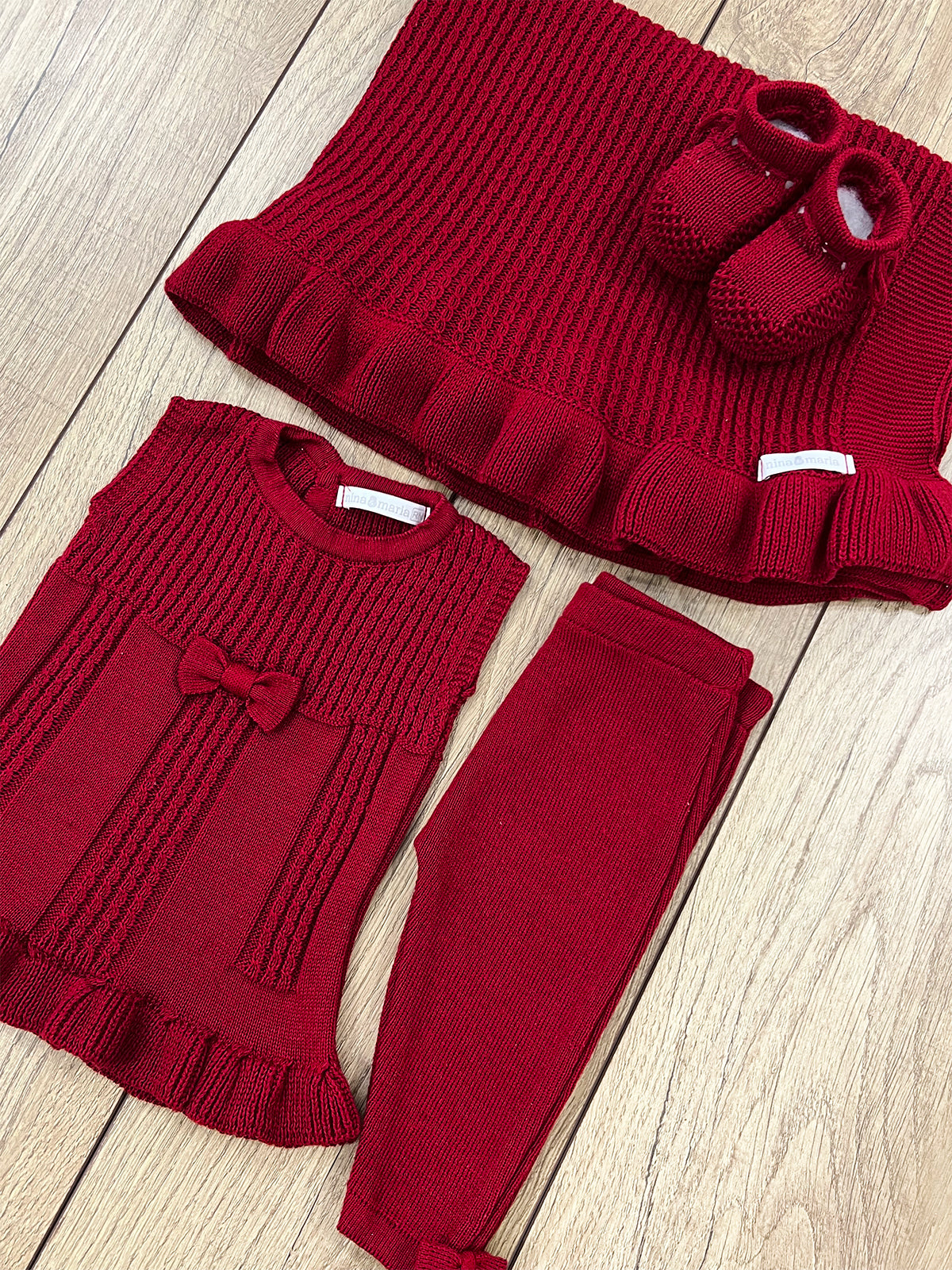 Saída de maternidade 4 peças. Vestidinho, legging sem pé, sapatinhos e manta de tricot com o mesmo trabalho do vestido.