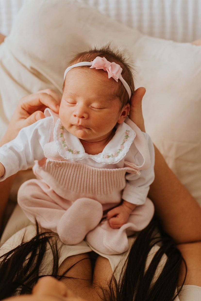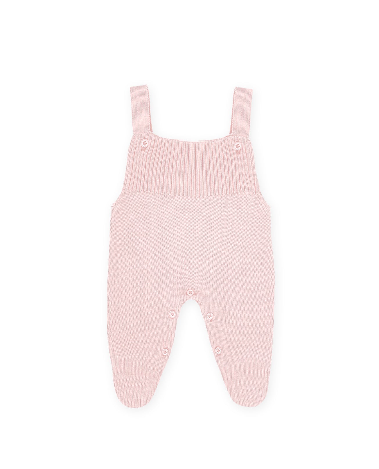 Salopete em tricot com abotoamento nas alças e nas entrepernas para facilitar a troca do bebê.